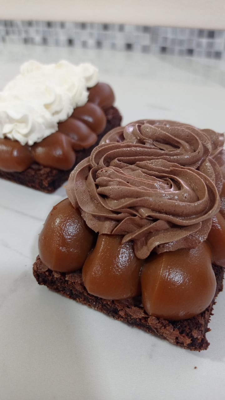 Brownie c/dulce de leche y mousse, crema o merengue italiano